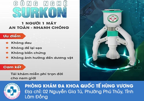 Tại Phòng Khám Đa Khoa Quốc Tế Hùng Vương – 2 Nguyễn Gia Tú, P. Phú Thuỷ, Tỉnh Lâm Đồng là cơ sở y tế chuyên khoa về bệnh xã hội uy tín, nơi quy tụ bác sĩ giỏi, máy móc hiện đại, dịch vụ tận tâm, giúp người bệnh an tâm điều trị hiệu quả.