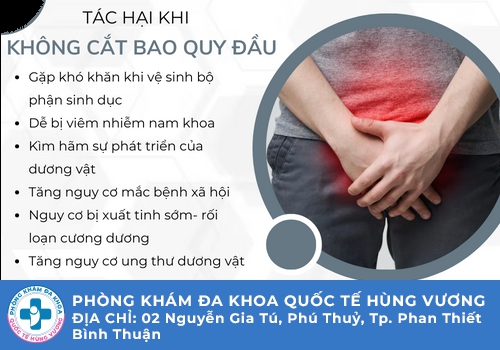 Phòng Khám Đa Khoa Quốc Tế Hùng Vương (02 Nguyễn Gia Tú, Khu phố 14, Thành phố Phan Thiết, Bình Thuận) là địa chỉ uy tín trong lĩnh vực nam khoa, thực hiện cắt bao quy đầu. Đặc biệt áp dụng rất thành công tiểu phẫu cắt bao quy đầu không đau với mức chi phí bình dân tại Bình Thuận.