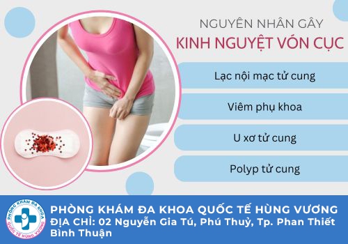 Viêm phụ khoa: Khi bị viêm phụ khoa, bệnh nhân bị khí hư bất thường, đau rát, ngứa âm đạo, đau khi quan hệ tình dục, dẫn đến biến chứng viêm ngược dòng lên các cơ quan sinh sản nằm sâu bên trong cơ thể, gây hiện tượng kinh nguyệt vón cục.