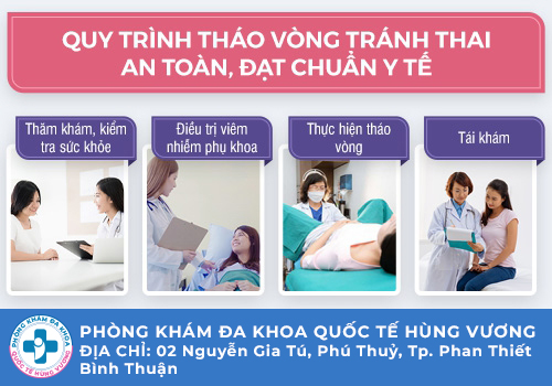 Phòng Khám Đa Khoa Quốc Tế Hùng Vương tại 4 Nguyễn Gia Tú, Phú Thuỷ, Thành phố Phan Thiết, Bình Thuận là địa chỉ đáng tin cậy trong việc xử lí các vấn đề phụ khoa trong đó có tháo vòng tránh thai, để mang đến cho chị em một cuộc sống hạnh phúc trọn vẹn. Chỉ cần gọi 0252.7303.888 hay nhấp vào khung chat, chị em có ngay mã khám ưu tiên tháo vòng tránh thai